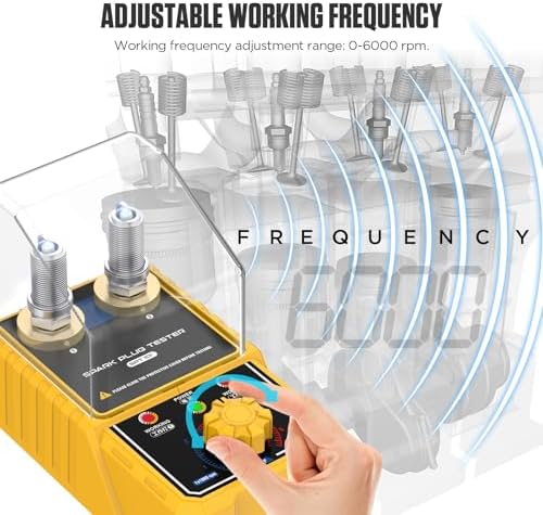 - 🏎️【Fácil de Conectar y Usar】El probador de chispa automotriz es fácil de operar, y puede comenzar a usarlo después de conectar el adaptador. Puede ajustar la frecuencia de trabajo en el rango de 0 a 6000rpm. El probador de chispa también puede simular el trabajo del motor, restaurando el arranque del auto para probar mejor la bujía.