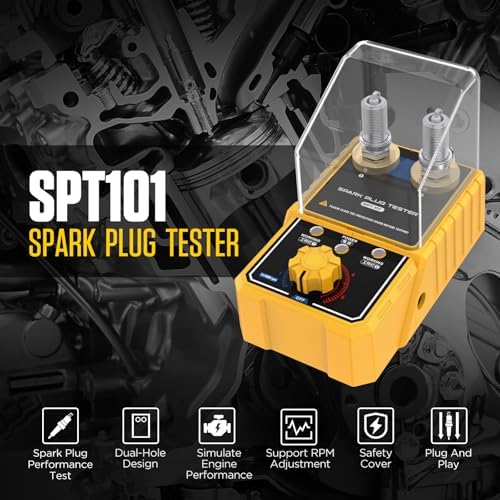 Spark Plug & Ignition Tools SPT101 Spark Tester Plug 2-Holes Detector Ignition Spark Plug Tester Analyzer 0 a 6000RPM Con Prueba de Rendimiento de Bujes de Encendido, Simulación de Rendimiento del Motor, Plug&Play 110V/220V