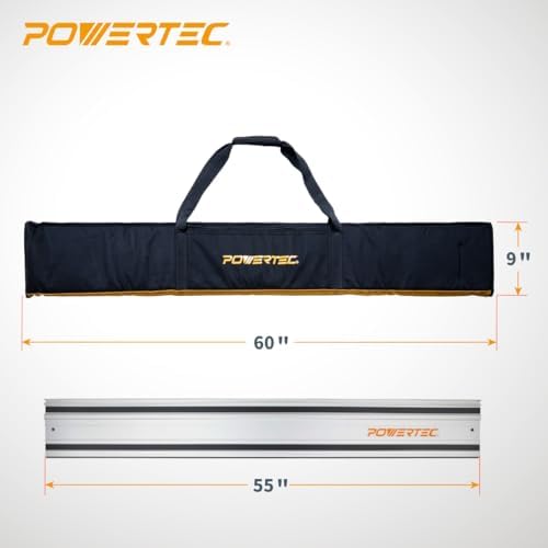 Introducing the Track Saw Guide Rail Kit with Connectors and Carrying Bag by POWERTEC. This kit was put together to provide you with a high quality set of 55 inch tracksaw tracks (guide rails), along with their connectors. Designed with high quality control in mind, the included components help you pair/ join the two tracks together, lining up square for accurate straight cuts. Our easy-to-use set interacts with the saw base to deliver high precision and balanced results. No matter whether you’re ripping sheet material or cross-cutting, you’ll find these tracks easy to set up and extremely versatile for your track saw projects. They are compatible with Festool, Makita and many other popular tracksaw brands. Each track is constructed of professional grade extruded aluminum. They possess a replaceable rubber splinter guard designed to minimize clean-up, while controlling flying sawdust during operation. This set includes (2) guide rail connectors – each one requiring four set screws for maximum track stability. PLUS… a Guide Rail Carrying Bag The 60 x 9 inch guide rail bag offers you a safe and maximum protection solution to securing your guide rails, tracks, clamps, connectors and other components. The heavy duty exterior is constructed out of non-tear, water resistant and moisture proof material designed for any set of workshop or environmental conditions. In inside flaunts dual-sided padded protection for a dual set of rails, along with individual straps to hold and secure your components. Features: Reinforced Zipper Closure Heavy Duty Shoulder Strap Ergonomic Handle Large 18”x 8”Pocket for Extra Storage Compatible with: Makita,Festool,WEN,Triton...