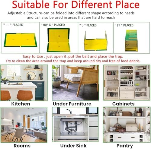 - Foldable&Thicker Cardboard - this mouse traps indoor for home are made of more thicker and harder cardboard which can prevent being dragged away by rats.You can fold up the mouse traps indoor to other shapes you want, like "一“ shape, "90°" shape, "U" shape and "口" shape. It can avoid being touched by children or pets, especially suitable for the placement in narrow space.