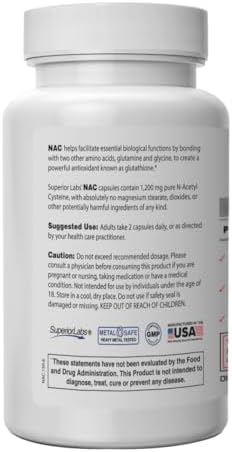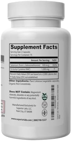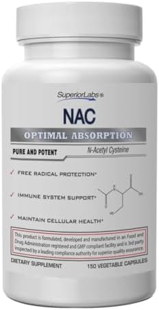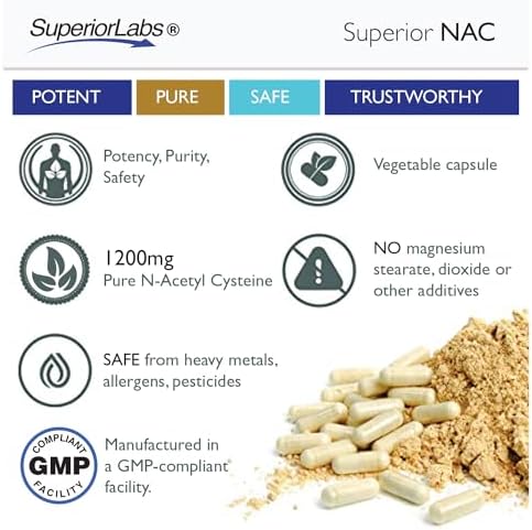 Superior Labs NAC (N-Acetyl Cysteine) 1,200mg, 150 Vegetable Capsules, Dietary Supplement with Selenium, Free Radical Protection, Normal Immune System Function, Maintains Cellular Health