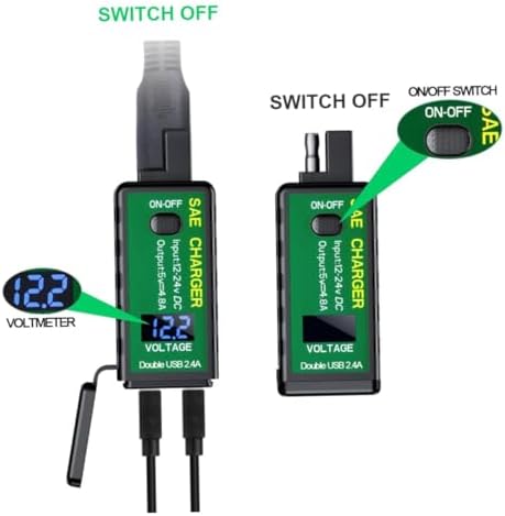- The SAE adapter has a built-in voltmeter. Monitories the battery and electrical system automatically and indicating the voltage in the screen, you will know the health of the battery while driving. Please pay attention when the voltage is under 12V. The upgraded display, with soft LED blue light without glare, would not interfere with your sight. It is also a very convenient way to tell you if the connection is successful.