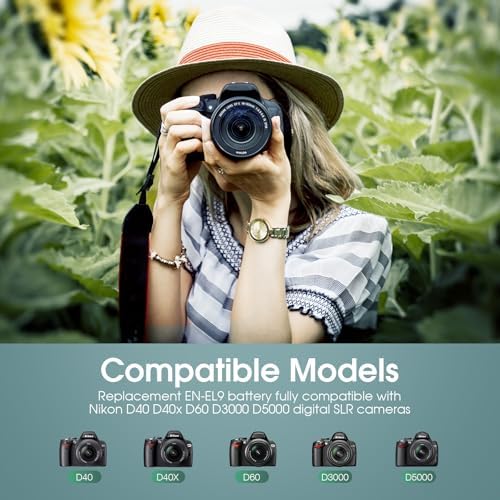 - 【Battery Feature】2000mAh x2 | 7.4 V | Premium Lithium-ion without memory effect. Higher capacity to help you record more exciting moments, is a professional replacement for Nikon EN-EL9 battery.
