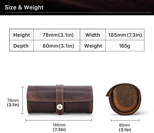• Material de moda retro: el rollo de la funda del reloj tiene dos partes: la caja exterior está hecha de cuero genuino y sin forro, natural y a la moda; la almohada interior para reloj está hecha de terciopelo de lujo, es suave y extraíble; el material de alta calidad hace que la funda de cuero de almacenamiento de su reloj esté a la moda y sea duradera