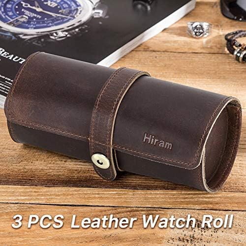 Funda para reloj de viaje de cuero genuino, organizador clásico, funda enrollable de 3 relojes de cuero Hiram para relojes y pulseras, color café
