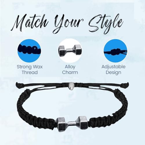 - FITNESS JEWELRY- Beautiful Black Dumbbell Bracelet For Men and Women. Stylish and strong, this dumbbell charm bracelet suits both men and women, making it a versatile choice for all.