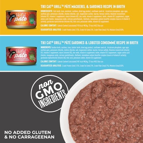 Tiki Cat Grill Pâté Variety Pack, Combinations of Real Flaked Fish, Wet High-Protein & High-Moisture Cat Food, 2.8 oz. Cans (Pack of 12)