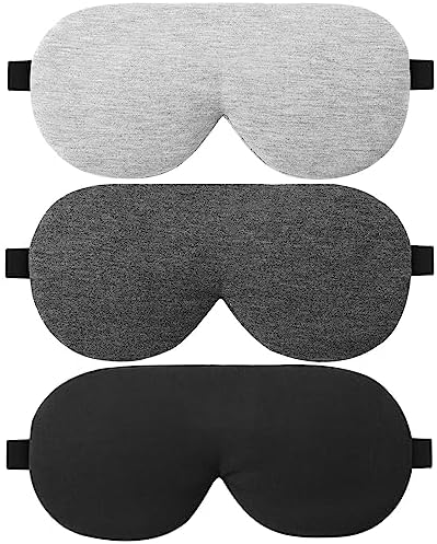 ALASKA BEAR 3 Pack Sleep Eye Masks Organic Cotton Cool Bamboo - Contoured Inserts for Pressure Free and 100% Light Blocking, Lightweight for Home or Travel Use (Black, Grey, Silver)