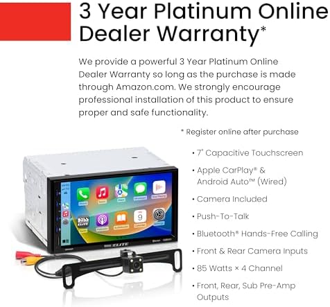 BOSS Audio Systems Elite BE7ACP-C Car Stereo - 7" Display, Apple CarPlay & Android Auto Head Unit, Double DIN Touch Screen Car Stereo, Bluetooth, AM/FM Radio Receiver, USB, SD, Backup Camera