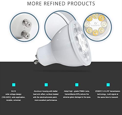 ZigBee 3.0 Smart 4W GU10 AC100-240V RGBCCT Spotlight Pro 25 Degree Beam Angle Color Change Bulb Dimmable Compatible with Amazon Echo Plus SmartThings App/Voice/RF Remote Control