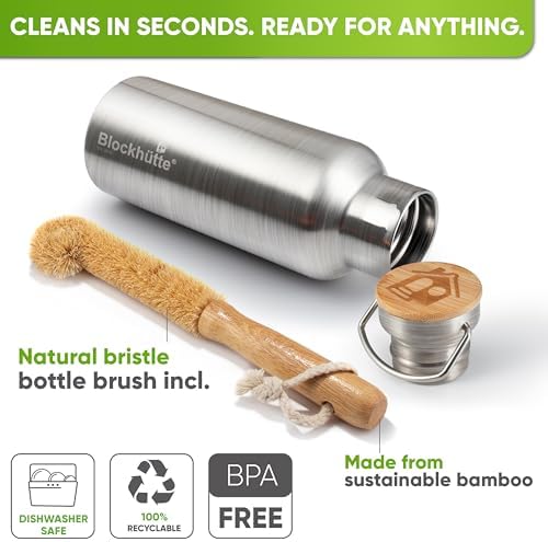 Blockhütte Vacuum Insulated Stainless Steel Water Bottle - 34 oz | Wide Mouth Insulated Metal Bottle for Cold Drinks | Perfect for Travel, School, Kids, Adults, Water Canteen, BPA-Free
