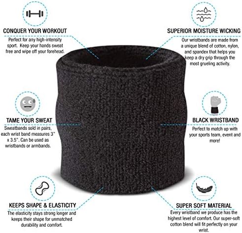 - ➤Stunning Absorbency – These sweatbands for your hands and wrists offer maximum absorbency beyond ordinary terry cloths. Perfect for high-intensity workouts, tennis, and basketball to keep you free from distractions from sweaty hands and stinging eyes.