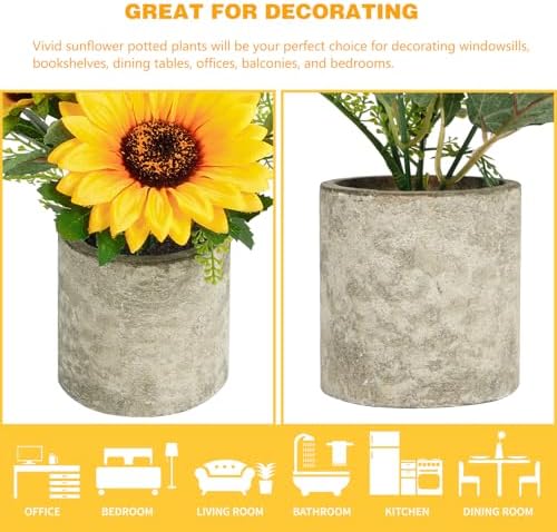 • Cuidado fácil: las plantas en maceta de girasol no se desvanecen ni se marchitan, no necesitan pegamento, solo necesita limpiar el polvo con un paño húmedo para lograr el propósito de limpieza.