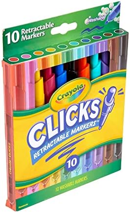 Crayola Clicks Marcadores de Punta Retráctil con Punta Extraíble para Niños (10und), Marcadores para Escuela, Suministros de Libro de Colorear de Larga Duración, Sin Secar, Artículos Esenciales para Regresar a la Escuela, 6+