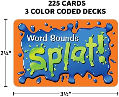 ¡Los juegos de ritmo rápido proporcionan práctica para habilidades de lectura inicial! Mientras el lector lee cada tarjeta en voz alta, los jugadores escanean las cartas frente a ellos. Si dos cartas coinciden, el jugador dice “¡SPLAT!” y voltea la carta. El primer jugador en voltear todas sus cartas gana. Tres mazos de colores hacen que sea fácil adaptar el juego para práctica uno a uno o para múltiples jugadores. Para 2-6 jugadores. Juego de 225 cartas: 75 Tarjetas de Lectura y 150 Cartas de Respuesta. ¡Incluye instrucciones fáciles para más tiempo de aprendizaje!