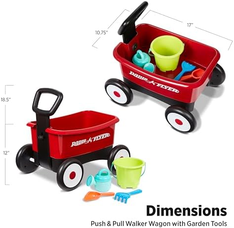 The Push & Pull Walker Wagon with Garden Tools is a versatile, grow-with-me wagon that supports early walking while inspiring pretend play. The unique handle locks upright to serve as a baby push walker, or unlocks to let kids pull their wagon on their own adventures. The included garden tools spark imagination and encourage outdoor exploration. With four-wheel stability, toddlers build balance and confidence indoors or outdoors. This product is the best for wagons carts foldable, beach wagon, camping deals, beach, carts with wheels, outdoor bench, toys for 1 year old boy, 1 year old girl gifts, 1 year old boy gifts, beach cart, beach wagon with big wheels for sand, folding wagon, wheelbarrow, and shopping cart. If you’re looking for sports and outdoors, utility cart on wheels, baby toys 6-12 months, baby girl gifts, baby walker with wheels, girl toys, baby boy gifts, baby girl one year old girl birthday gifts, or a beach wagon for sand, look no further! This is the ideal toys for 1 + year old girl, toys for 1 year old girl, toddler girl toys, walker for baby boy 6-12 months, girls toys, one year old boy birthday gift, infant toys, toddler boy toys, baby gifts, toys for girls, and toys for 1 + year old boy. It’s highly recommended for toddler toys 1-2, first birthday gifts for girls, toys for boys, 6 month old toys, 1st birthday girl gifts, kids wagon, boy toys, baby girl toys, gifts for 1 year old boys, first birthday gifts for boys, gifts for 1 year old girl, and 1st birthday gifts boy. For additional questions, support, or concerns, please contact our customer service team at https://www .radioflyer .com/customer-service/ or 1 (800) 621-7613.