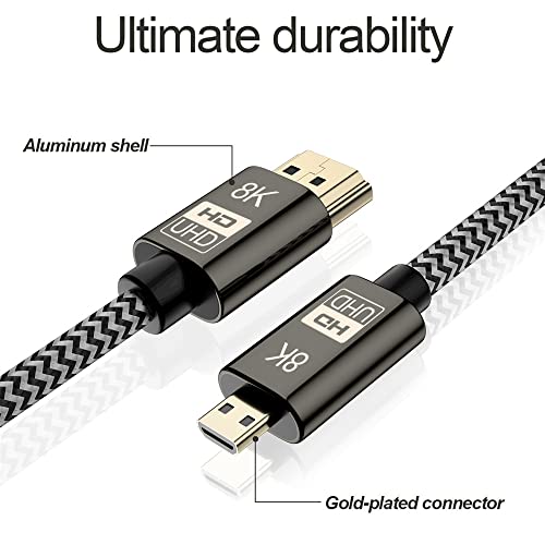 • Micro HDMI to HDMI 2.1 Ultra-HD UHD 8K 60hz 4K 120hz Cable 48Gbs HDMI Cord for Camera Tablet Port: Micro HDMI 8K Male to HDMI 8K Male