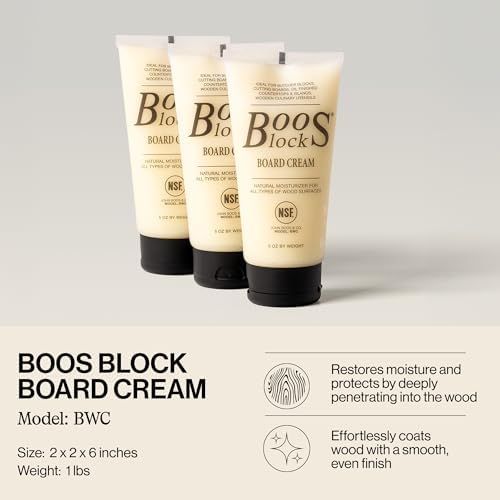 • Easy Care: Hand-wash only. Use the included 3-pack of Boos Block Board Cream to preserve the natural beauty of the wooden board surface and fibers. Refer to our care guide for details.