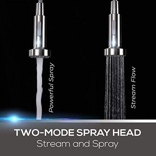 • Dual-Function Spray Head And 360° Spout – Single handle operation allows precise and effortless control of water temperature and flow rate. This kitchen faucet has two functions: easily switch between Stream flow and powerful Spray. It also has a 360° rotation spout for a wide range of motion in and around sink.
