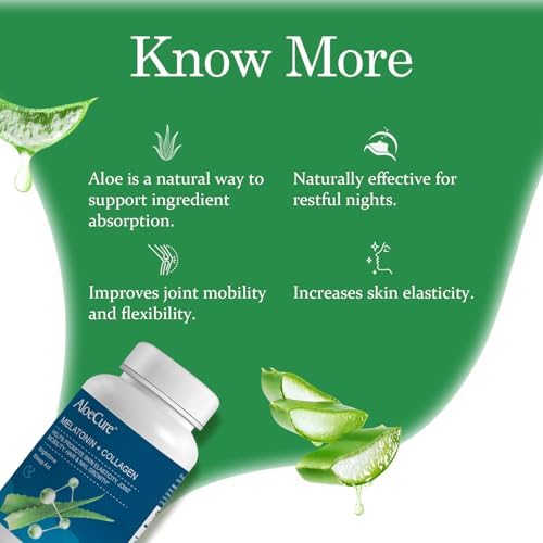 AloeCure Natural Melatonin + Collagen with Organic Aloe Vera - Natural Sleep Aid Supplement for Restful Nights - Collagen Complex for Joint Strength, Skin Elasticity, Hair & Nail Growth, 30 Capsules