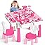 - Exquisite Table and Chair Set: Made of ABS material, thick and reliable, hold your kids up without wobbling or collapsing. Round edge and anti-slip mat ensure safe playing time! Chairs conform to the ergonomic theory, helpful to cultivate the kid's upright sitting posture. Ideal kids play table for your child’s bedroom, playroom, or the living room
