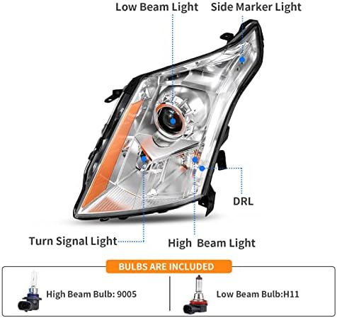 • Compatibility: the headlight assemblies are compatible with 2010-2016 Cadillac SRX (Compatible with Models Halogen Headlights Only,Not Compatible with Xenon HID Headlight Models); high beam bulb type: HB3/9005; low beam bulb type: H11; bulbs are included
