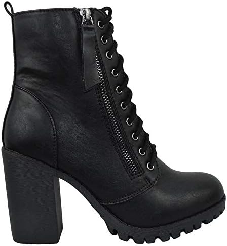 Soda Women Chunky High Heel Combat Army Military Riding Ankle Boots Lace Up Booties Malia-S Black 7.5