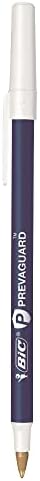 El bolígrafo BIC Prevaguard Round Stic contiene un agente incorporado en el plástico que protege el bolígrafo en sí suprimiendo el crecimiento de bacterias, algas, hongos y moho. Estos productos protegen los bolígrafos en sí y no protegen a los usuarios u otros de bacterias, virus o gérmenes causantes de enfermedades. El agente debería durar toda la vida del plástico del bolígrafo a menos que se destruya el plástico. Además del agente en el bolígrafo, el bolígrafo Round Stic es el producto BIC que conoce y ama. El bolígrafo BIC Round Stic escribe un 90% más que el Papermate InkJoy ST100, brindándole un gran valor por su dinero. Este bolígrafo también cuenta con una punta de bola de 1.0 mm que ofrece una escritura suave para crear líneas vívidas y altamente visibles ideales para tomar notas, redactar, dibujar y otras actividades de escritura.