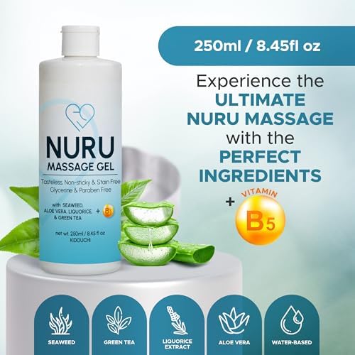 Nuru Massage Gel (8.45 fl oz) | Water-Based | Paraben & Glycerine Free | Formulated with Natural Seaweed, Green Tea, Liquorice Extract, Vitamin B5, & Organic Aloe Vera