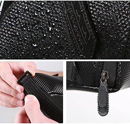 - 1. TELA RESISTENTE AL AGUA: el material impermeable de alta densidad de la alforja sintética de poliuretano y la cremallera de goma resistente al agua son impermeables a la lluvia, protegen los objetos de valor del agua, la suciedad y el polvo y garantizan un secado seguro de los artículos. La superficie se puede limpiar fácilmente con las manos.