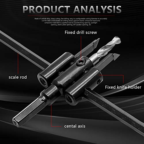 - ADJUSTABLE SCALE VALUE - The alloy steel beam has a clear metric size scale. After adjusting the distance from the drill bit to the center, you can quickly measure the diameter of the hole in order to accurately cut the perfect circle, saving time and effort, fast and convenient.
