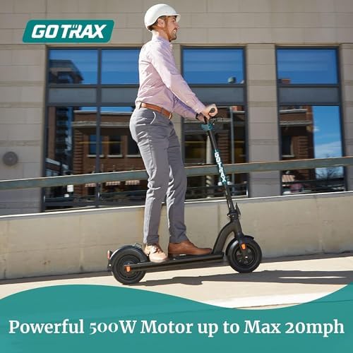 - Redefine Your Commute: Ride in comfort with our 10" pneumatic tires, both front and rear tire can absorbing shock and small bumpy from different terrains. The 6.7inch wide deck and soft silicone pad provide stability for riders; To ride your GOTRAX E-scooter safely, put one foot on the scooter and the other on the ground to push off. Once you go faster than 1.8mph, you can use the throttle and the scooter will move on its own.