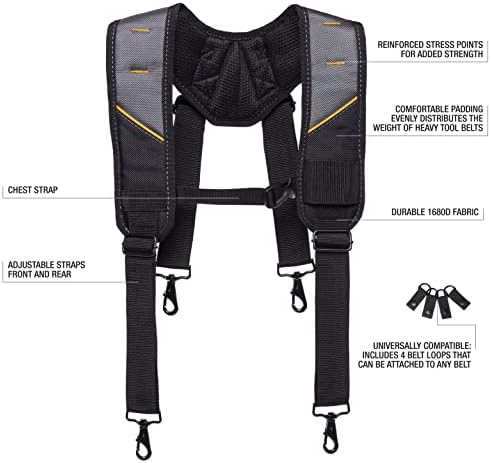 • Acolchado cómodo que distribuye el peso de los cinturones de herramientas pesados