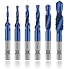 - 【Tamaño perfecto】El juego de brocas y roscados combinado ASDTODW contiene seis tamaños, a saber: métrico: M3x0.5, M4x0.7, M5x0.8, M6x1, M8x1.25, M10x1.5, Vástago: 1/4 pulgada (6.35 mm) vástago hexagonal. Se puede utilizar para roscar varios hilos, facilitando su trabajo. Cada broca de roscado está grabada con su tamaño para que pueda elegir el tamaño adecuado de un vistazo.