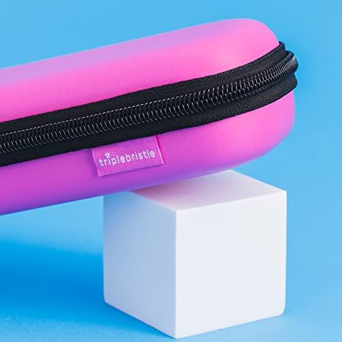 - SLEEK TOOTHBRUSH CASE – This 10” x 1.5” x 2.5” case comes in two vibrant colors – blue and pink. The case and zipper are embossed with the Triple Bristle tooth to sport the Triple Bristle lifestyle in a sleek and elegant way.
