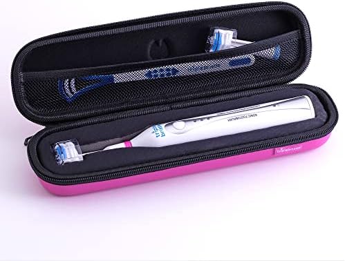 Triple Bristle Sonic Toothbrush Travel Case | Portable Breathable Toothbrush Hard Carrying Bag for Traveling, Camping, Business Trip | Mesh Pocket for Accessories | Pink