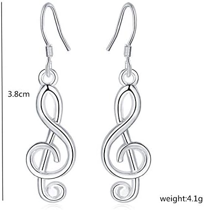 ONLYJUMP 925 Sterling Silver Musical Note Earrings for Women Unique Fun Treble Clef Opal Polished Hook Earrings for Music Lover (Silver)