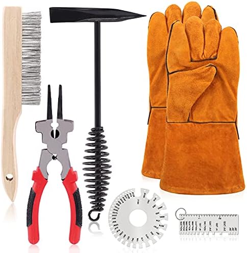 - ☛ 1, 【 What You Get】 ------ In this kit, You will get 7Pcs 10 Inch Scratch Wire Brush Slag Removal Tool with Welding Gloves. Including 1 piece of wire brush, 1 piece of welding hammer and 1 piece welding plier, 1 piece Metal sheet thickness gauge,1Pcs Round dual sided wire gage. In total 5Pcs. Which are easy to remove and clean corrosion and slag from most of your welds, Welding chipping hammer and steel wire brush, makes it easy to clean and remove slag from all your welds.