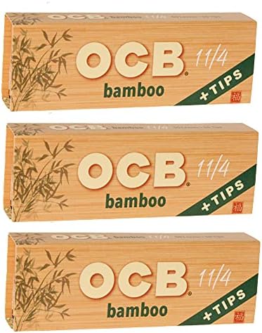 OCB - Bamboo 1 1/4"Rolling Paper & Tips - 3 Booklets with 50 Leaves per Booklet