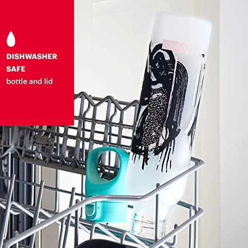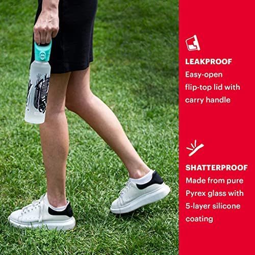 Pyrex 24-Oz Color Changing Glass Water Bottle with Silicone Coating, Leakproof and Textured Glass Reusable Water Bottle with Flip-Top Lid, Eco-Friendly, BPA-Free Silicone Coating, Doodles