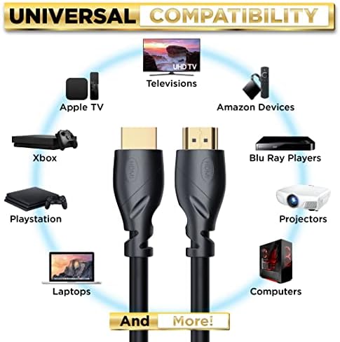 PowerBear 4K HDMI Cable 20 ft | High Speed, Rubber & Gold Connectors, 4K @ 60Hz, Ultra HD, 2K, 1080P & ARC Compatible for Laptop, Monitor, PS5, PS4, Xbox One, Fire TV, Apple TV & More