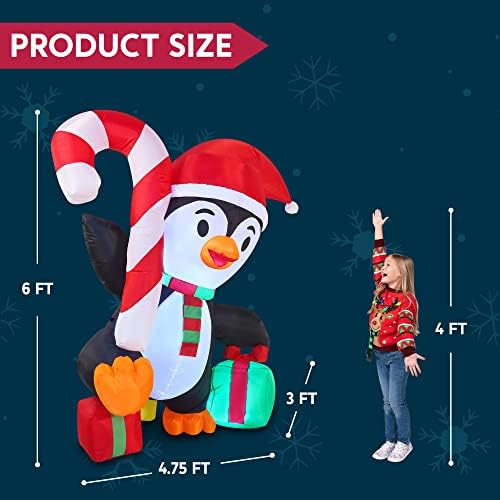 Joiedomi 6 FT Christmas Inflatable Funny Penguin, Decoración Inflable para Navidad con LED incorporados, Inflable para Exteriores con Cordón extendido, Clavos para el suelo, Cuerdas aseguradas y Bolsas de arena incorporadas
