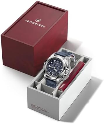 Mantén el control de tu tiempo con un reloj que logra el equilibrio perfecto entre la fuerza discreta y el diseño inteligente. Quietamente seguro y confiablemente preciso, el Victorinox I.N.O.X. Chrono encapsula una sensación de libertad y calma. Con su caja y bisel compuestos de 60-70% de acero inoxidable reciclado más un revestimiento anti-arañazos para el bisel, este cronógrafo expertamente elaborado se termina con una elegante y cómoda correa de caucho. Caja de acero inoxidable de 43 mmAltura: 13 mmPeso: 4.9 ozAncho del lomo: 21 mmSellado de la tapa de la caja: Tapa de la caja roscadaTipo de movimiento: Cuarzo analógicoResistente al agua: 20 ATM/200 M/660 FTAcabado del bisel: PulidoCronógrafoMaterial de la correa: CauchoColor de la esfera: AzulManos luminiscentes: SíNúmero de Serie del Ejército Suizo Victorinox: 241984