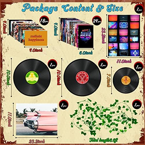 - Unique design- This includes 4 sizes of collages, 2 sizes of records, 6.6ft fake vines, and the non-repetitive patterns to meet your different decor needs.