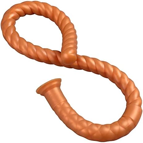 Super Long Anal Plug Dildo, 31.49 inch Liquid Silicone Anal Butt Plug with Spiral Texture Design, Ultra Soft Vaginal Massage Prostate Stimulation for Women Men (Gold)
