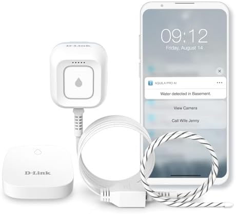 D-Link Next-Gen WiFi Water Leak Detector Starter Kit with 2 sensors—Loud 100 dB Sound Alarm—App Alert—LED Strobe Light—No Hub Required—Works with Google—1000ft Ultra-Long Range—Expandable (SW-A11KT)