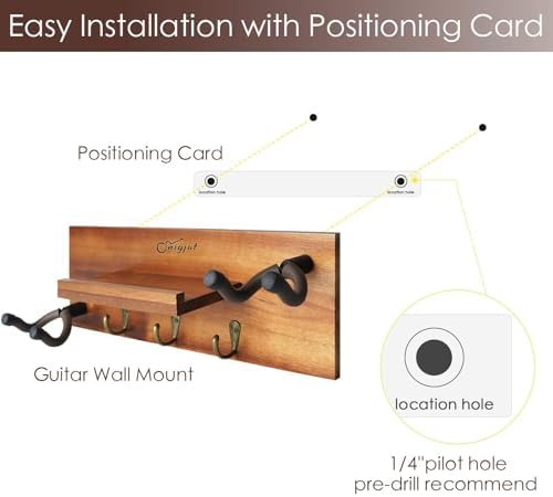 - Tarjeta de posicionamiento especial incluida: la tarjeta de posicionamiento adjunta puede ayudarlo a marcar fácilmente la distancia de dos orificios y conocer el tamaño de los orificios de perforación (se muestra el orificio piloto de 1/4 «en la tarjeta). Finalizar la instalación de forma rápida y sencilla sin complejidad. Este colgante de guitarra es un regalo de guitarra perfecto para hombres, guitarristas, hijos, hijas, marido, esposa, novia, novio, abuelos, padres y amigos a los que les gustan los instrumentos musicales en Navidad y Acción de Gracias.