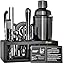 - MIX DRINKS LIKE A PRO: This cocktail kit makes professional-level mixology incredibly easy. Instantly transform your home bar with a sleek, modern looking array of bar accessories, all displayed beautifully in a dark wood stand. Forget about finding a new recipe online every time or getting wrong measurements, with the included 16 recipe cocktail book, you’ll have everything you need to start mixing drinks at home.