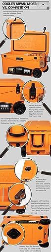 - COOLER FEATURES: · Made out of a 3 inch High Density Multi Compound PU Foam Pressure-Injected Insulation · Heavy Duty Latches Mechanism, open and close the cooler easily in a finger snap · SS Bottle Opener and Lock Pad Capability · Non-Slip Non-Marking Bottoms on all 4 corners to keep your cooler in place · Embossed 28 inch Ruler on Lid · Commercial Grade Door Lid Seal Gasket, to keep the cold inside, and the heat out.