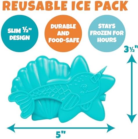 - Bolsa de Hielo Dura Duradero y a Prueba de Fugas: Este adorable enfriador de hielo en forma de narwhal es seguro para alimentos y duradero. Las bolsas de hielo duras de Bentology se congelan rápidamente y no se derriten ni se filtran debido a su material duro y protector. Nuestro diseño delgado ahorra espacio dejando más espacio para bocadillos y otros regalos!